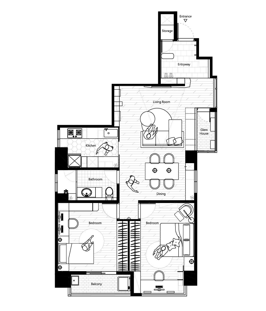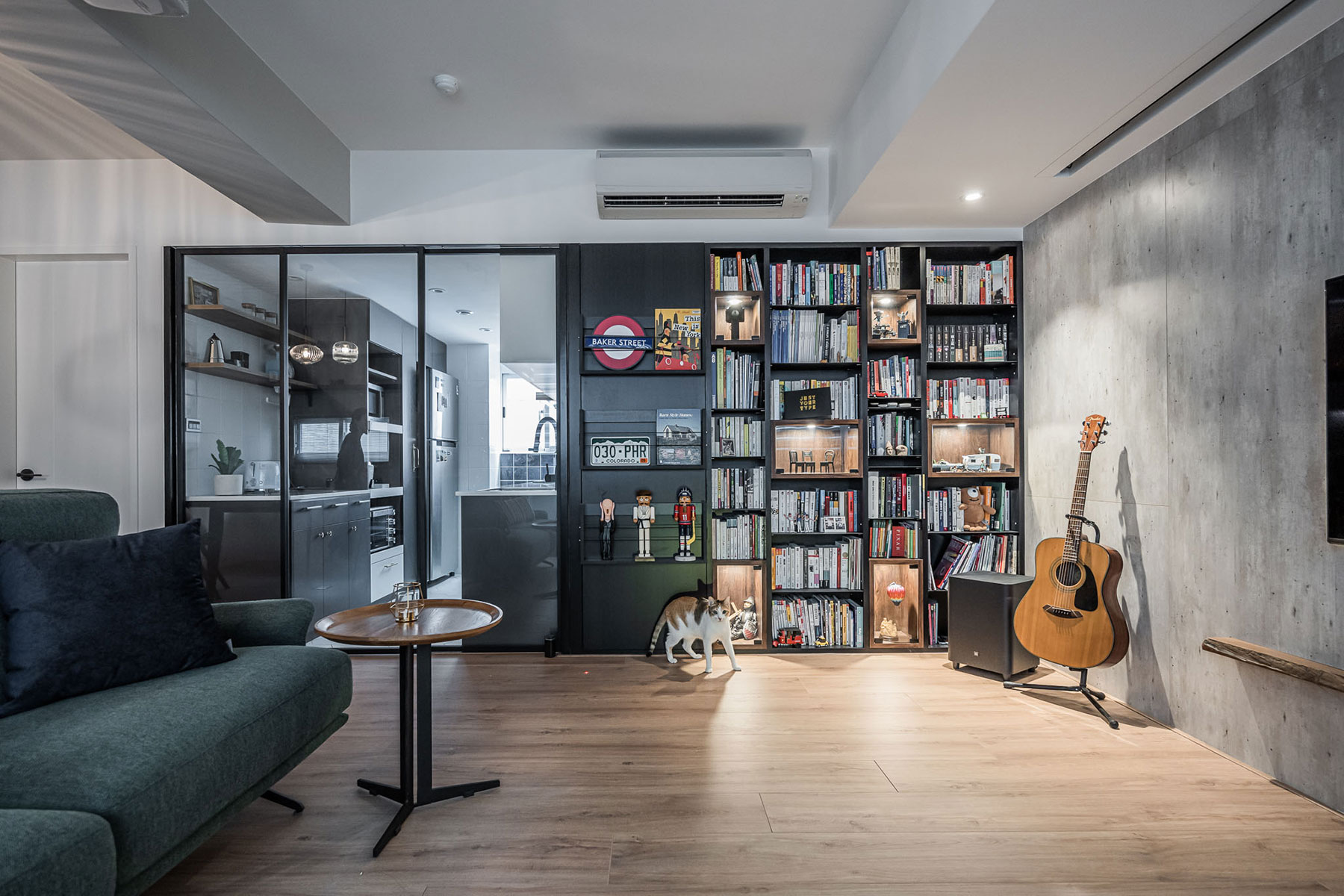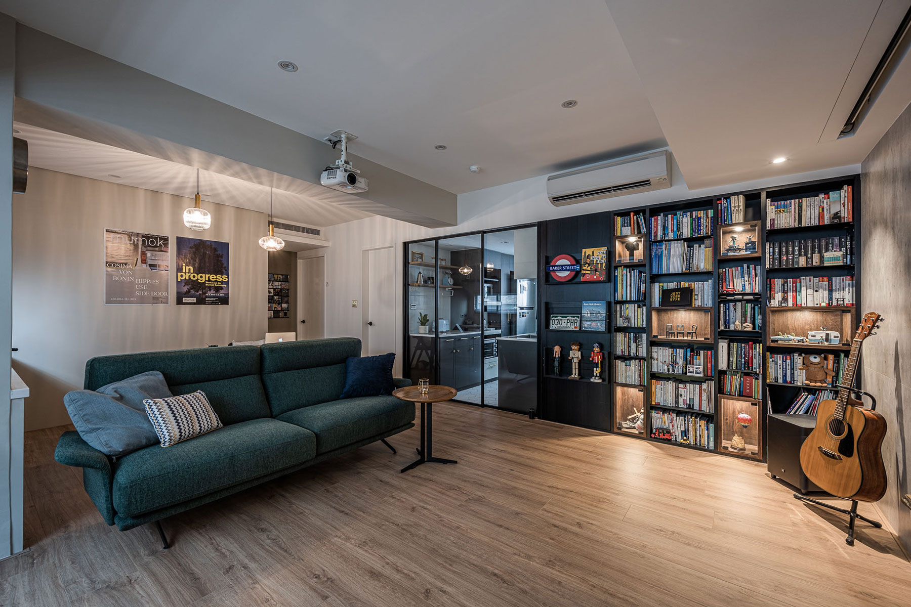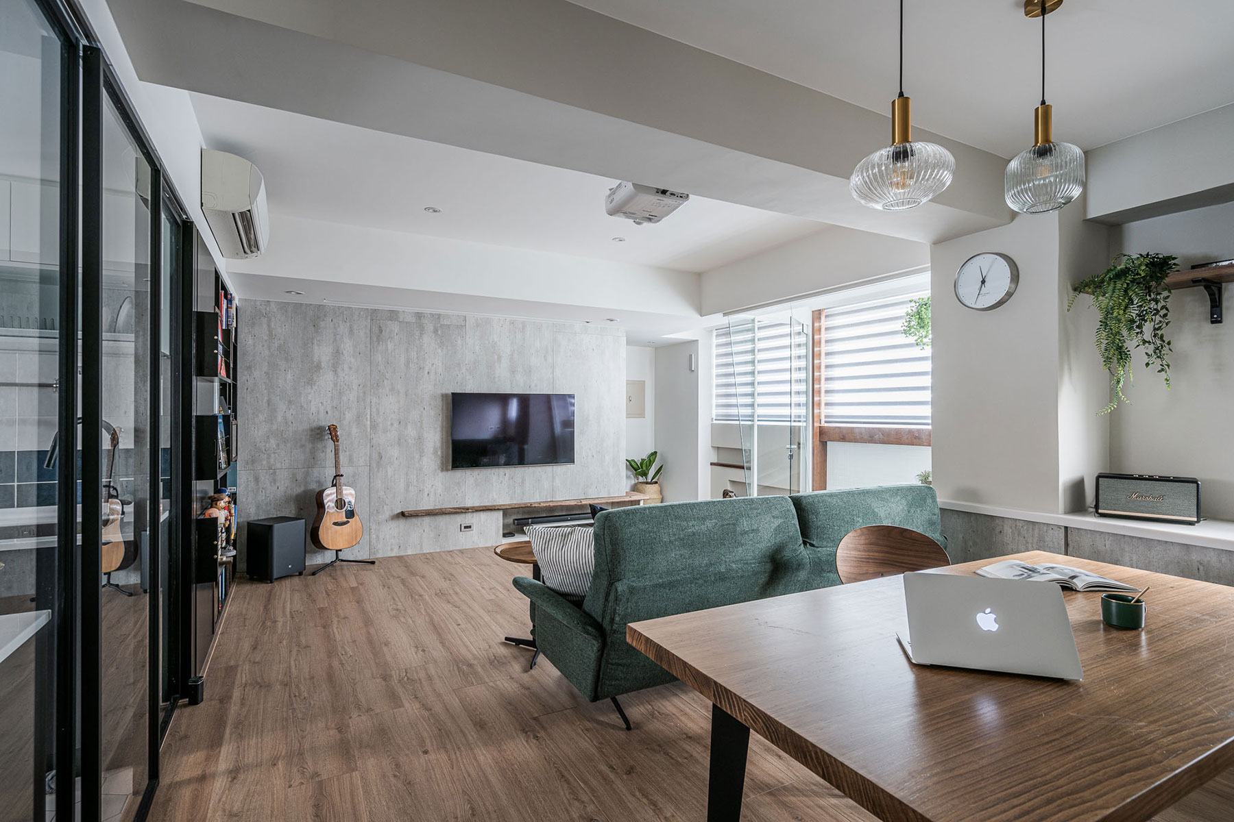 手工窯變磚、橡木貼皮、黑鐵鏽蝕烤漆、特殊石頭漆、超耐磨木地板、鋁框拉門、長虹玻璃、美式線板