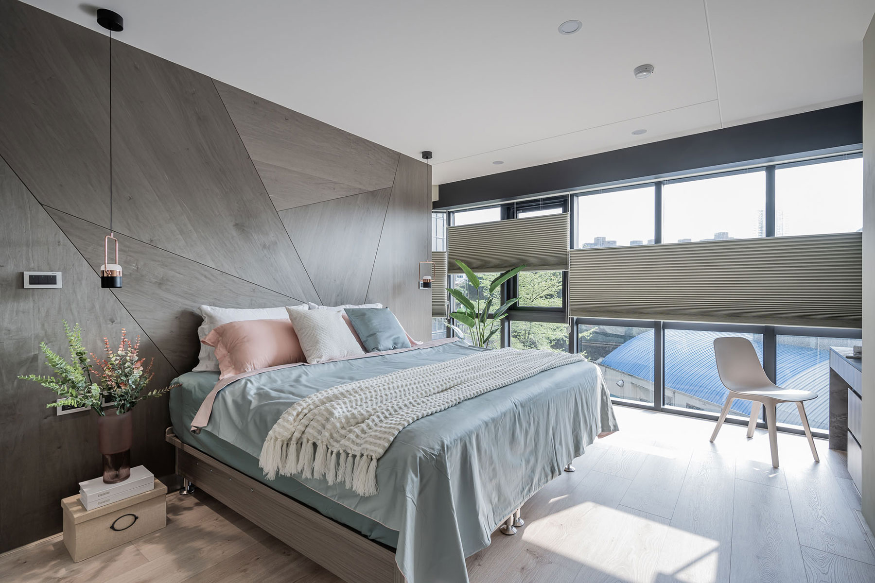 主客臥室皆採用遮光蜂巢簾,保留空間原有採光優勢,也能隔絕視線直接穿透;三間浴室根據使用上需求不同而有相異的規劃,主衛浴穩重大器、給女兒們使用的次衛浴帶有童趣、客衛浴則捨棄了多餘裝飾,只留下乾淨清爽。