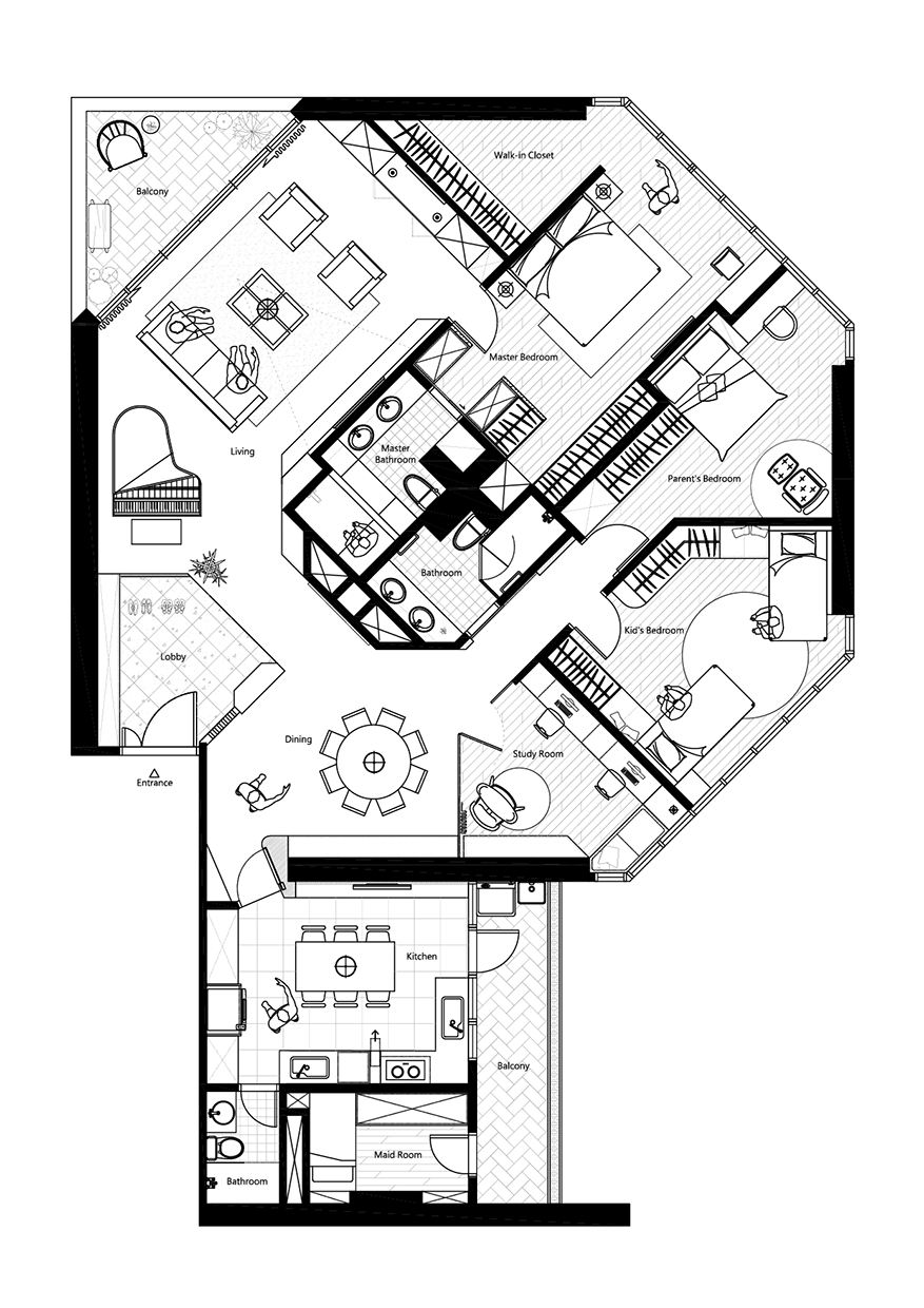 為家庭成員一一設想,讓彼此都有個人獨立空間,也能因公共空間有所串聯,分享生活,相處起來更融洽舒適。