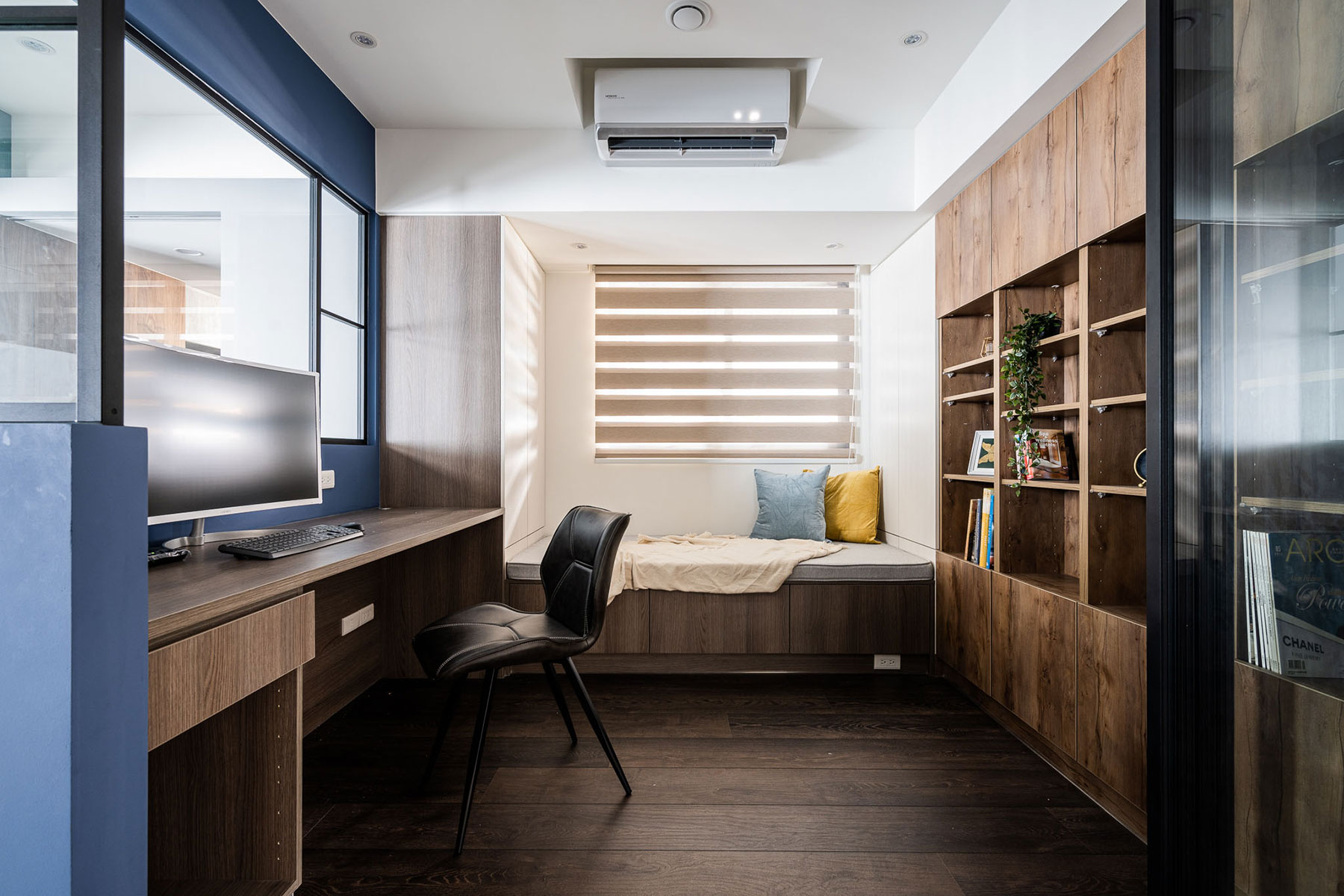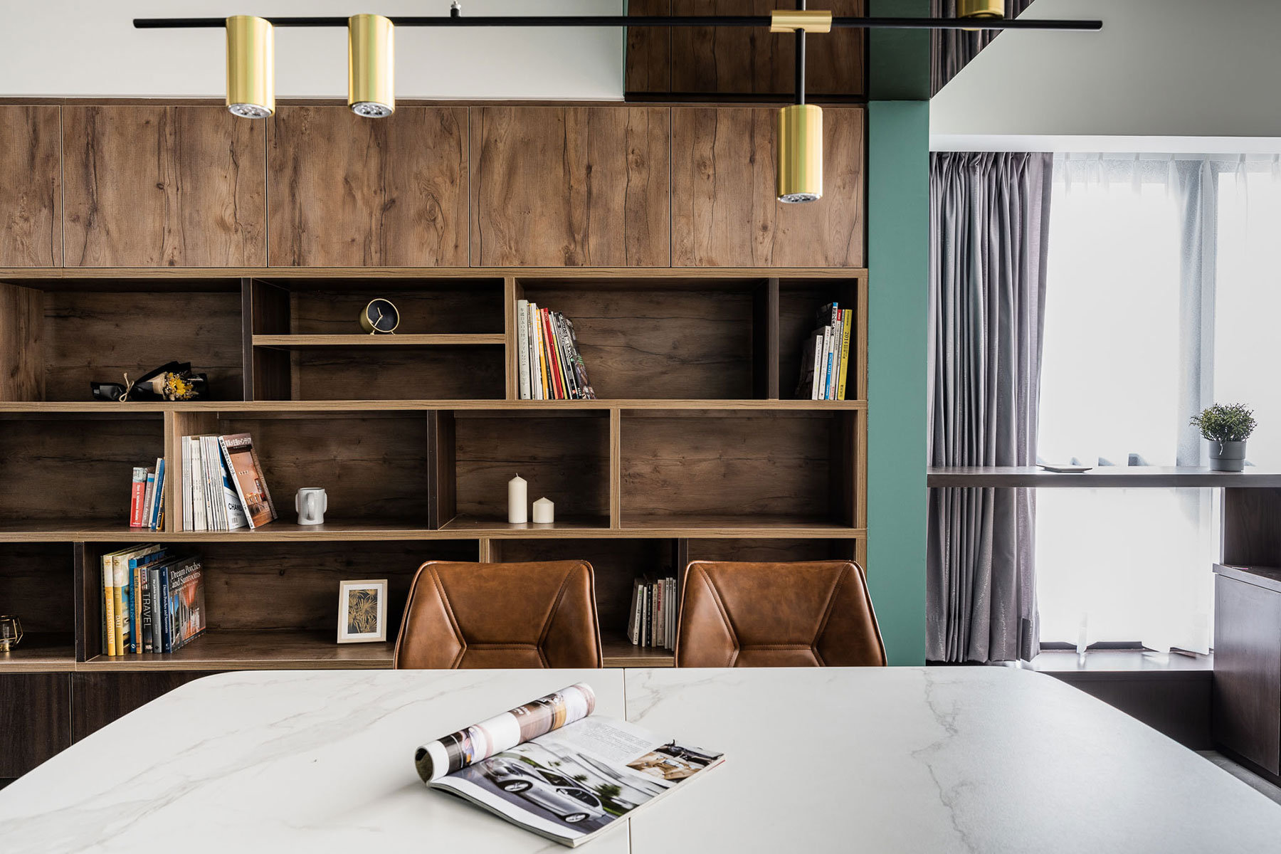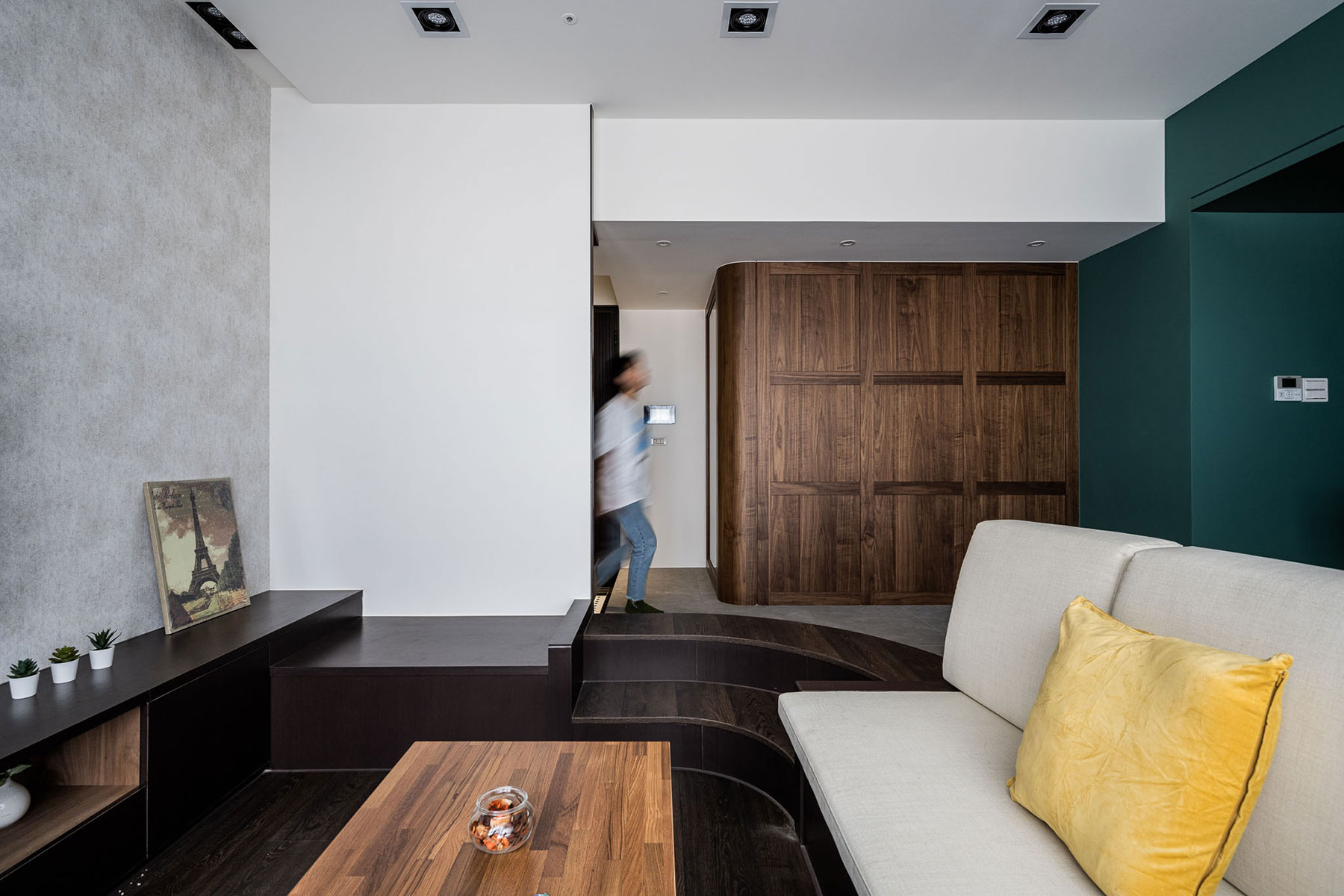 鋼刷實木貼皮、黑白馬賽克滾邊磚、金屬烤漆屏風、大板岩磚、超耐磨木地板、黑色鋁框格屏、進口手工窯變磚(綠)